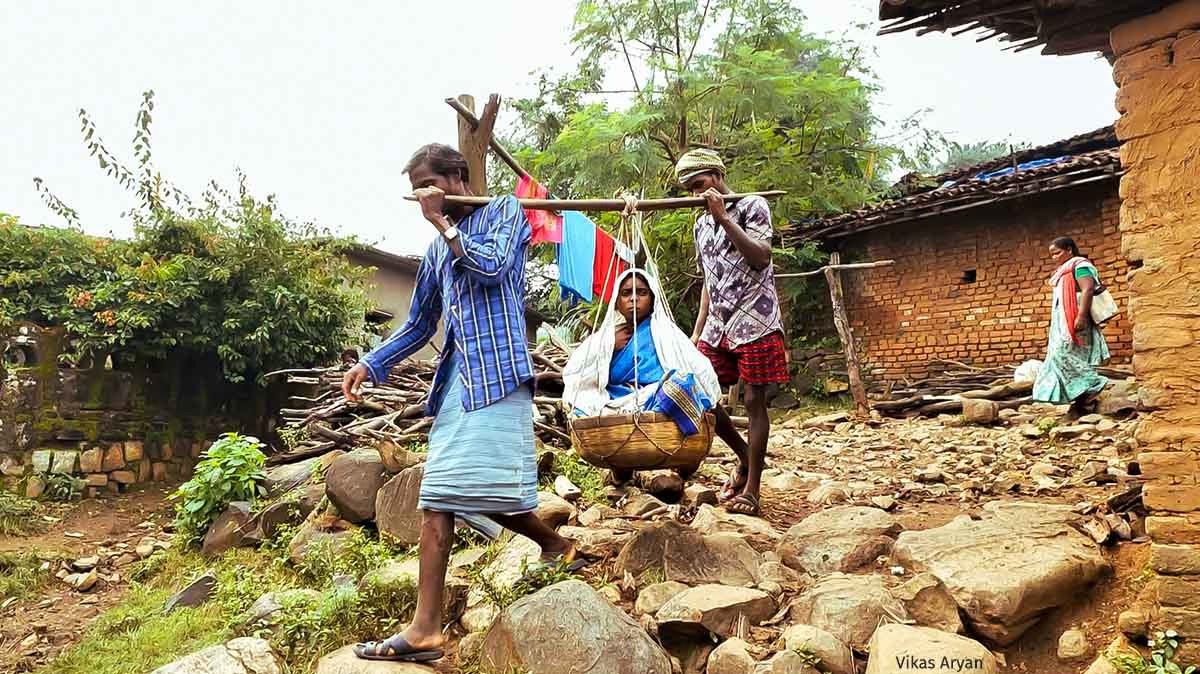Earlier in her pregnancy, Amarmuni's father Sukhdev and fellow villagers carried her in a makeshift bamboo sling through the forest, hoping to reach the hospital before nightfall for a crucial checkup. This is not an isolated story, but one that resonates across India's tribal regions where every sixth child is born without the benefit of professional medical care.