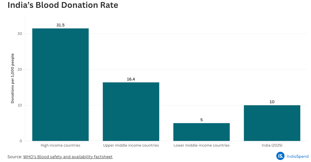 In August 2025, the government told Parliament that India’s annual blood requirement of 14.6 million units was met in 2024-25. But that requirement figure comes from a 2018 study using a population estimate of 1.31 billion—India’s population in 2025 is 1.46 billion.