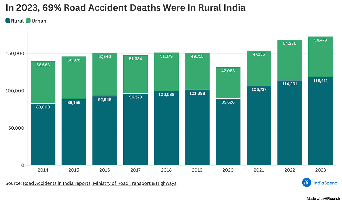 India’s road accident data have many flaws: As we had reported in October 2021, the government uses only police data to report road accident fatalities, ignoring sources such as hospitals, state and district level transport departments. For instance, if someone dies 30 days after an accident–as is possible in cases of grievous injury–it does not count as a road accident death.